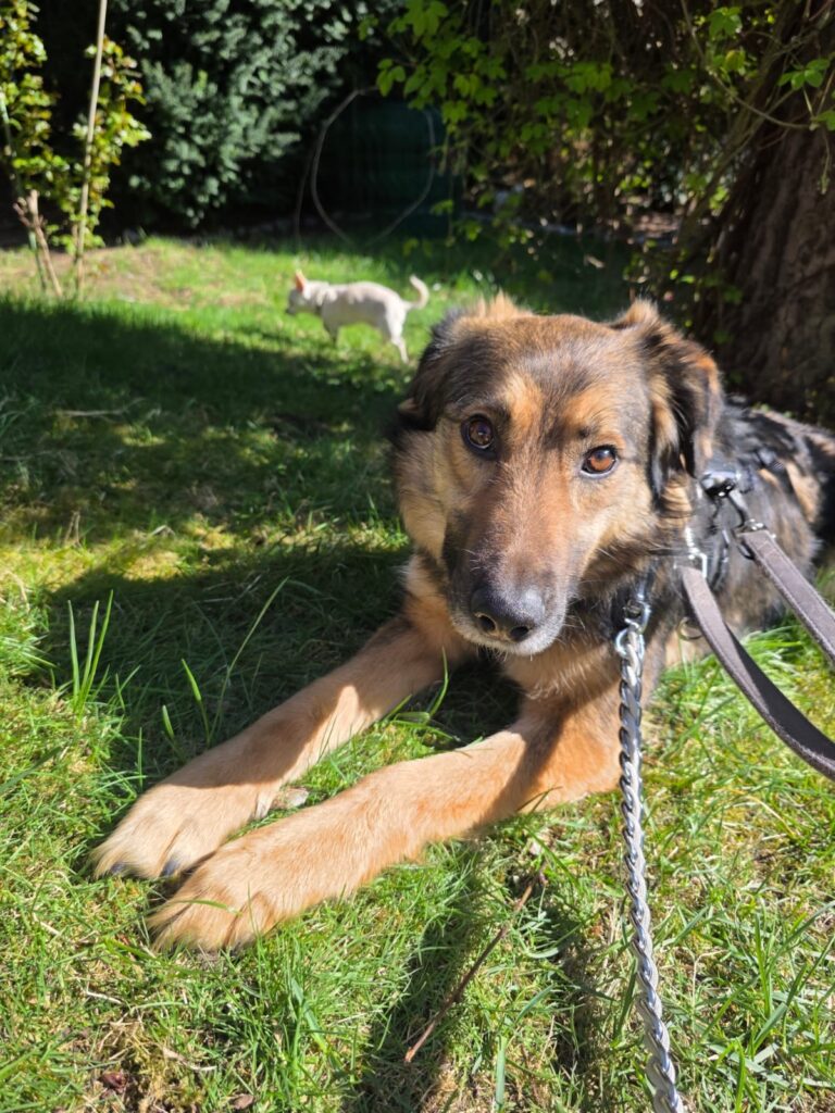 Mit Artgenossen ist Hope gut verträglich und würde sich sehr über einen souveränen Ersthund freuen, an dem sie sich orientieren kann.