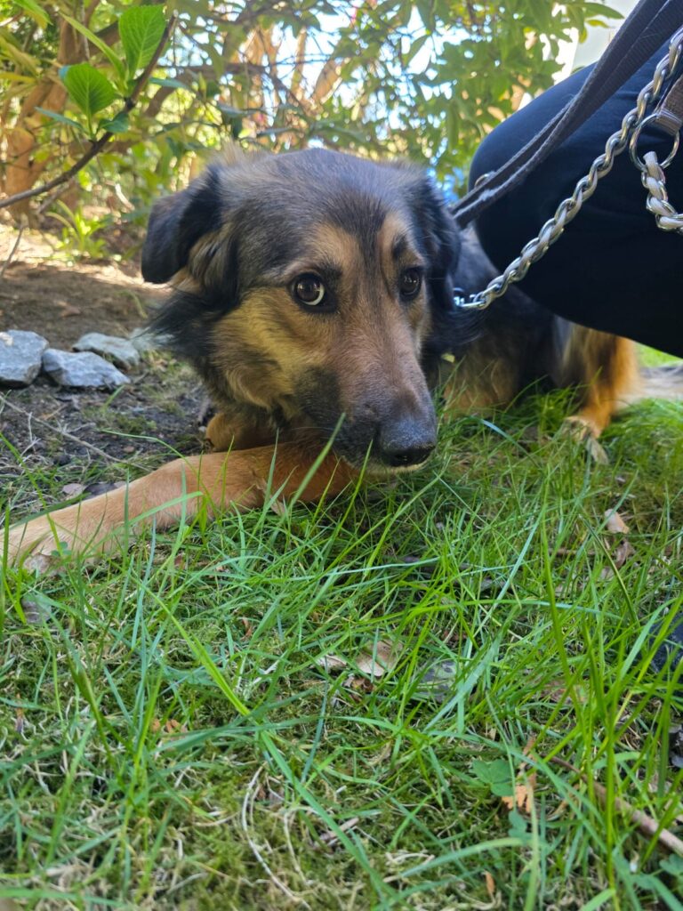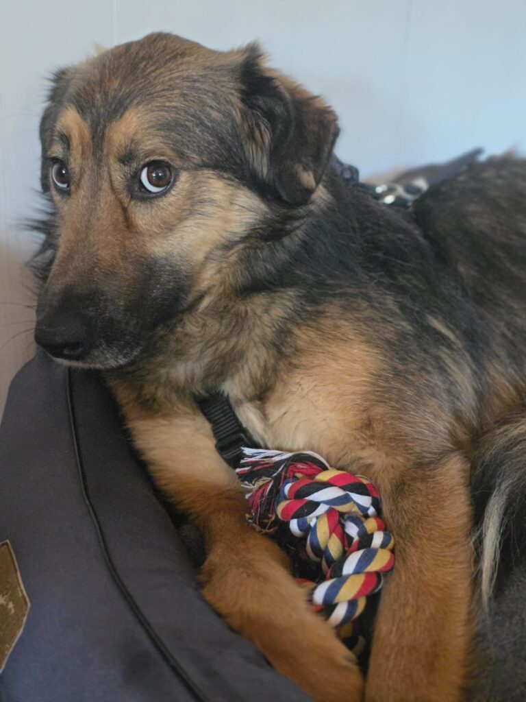 Hope liebt Leckerlis, und mit Geduld, Ruhe und Einfühlungsvermögen gewinnt man schnell ihr Vertrauen, sodass sie diese auch aus der Hand nimmt. Eine kleine Besonderheit: Schuhe haben es ihr besonders angetan – die sammelt sie nur zu gerne ein 😉