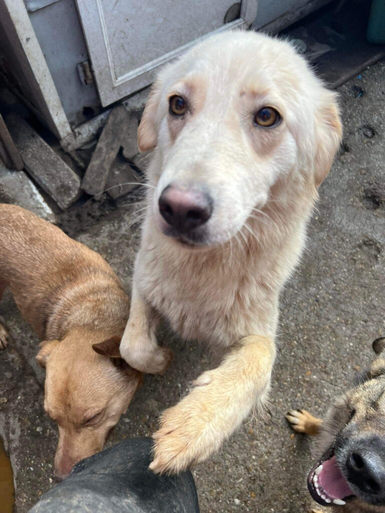 Penny ist eine sehr freundliche aber vorsichtige Hündin. Sie nimmt Leckerchen aus der Hand und lässt sich auch vorsichtig streicheln. Penny braucht Menschen, die sie an die Pfote nehmen. Ein souveräner Zweithund an dem sich Penny orientieren kann, ist sicherlich von Vorteil. Penny kennt bislang nur das Shelter und wird sicherlich etwas Zeit brauchen.